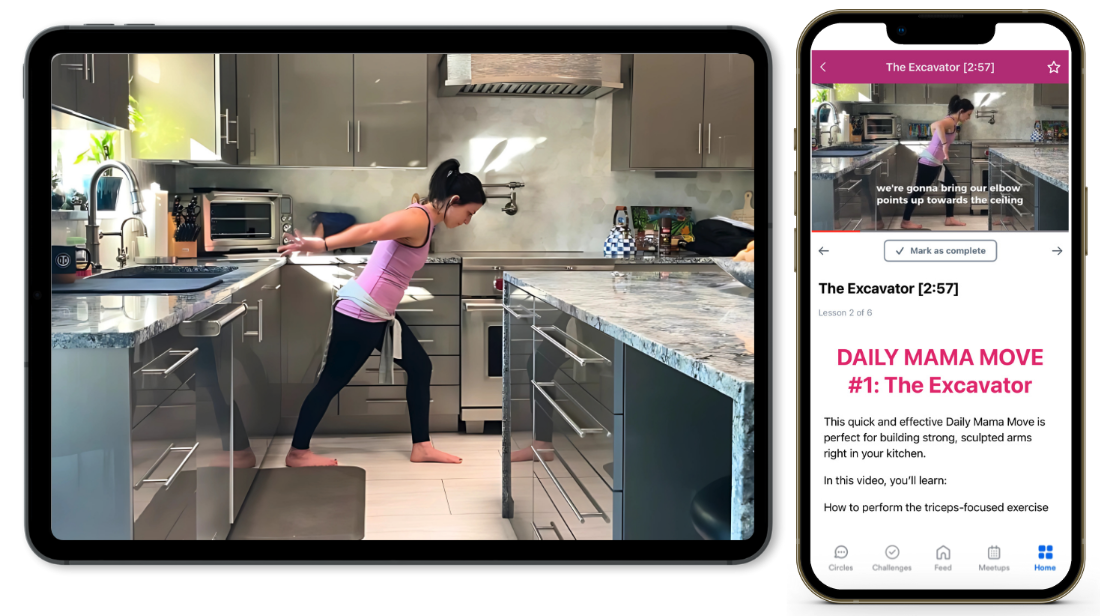 Follow along with real-life demos filmed in the kitchen, living room, and playroom—so you can move without clearing space or blocking off time. Includes written breakdowns with modifications and variations to match your body, space, and energy.