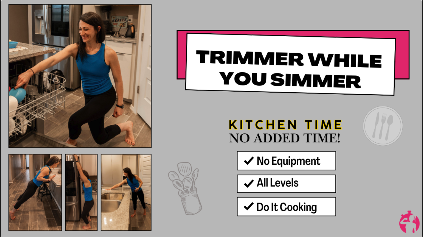 - Bonus: Trimmer While You Simmer, 14 follow along kitchen moves to do while you cook, clean, and prep