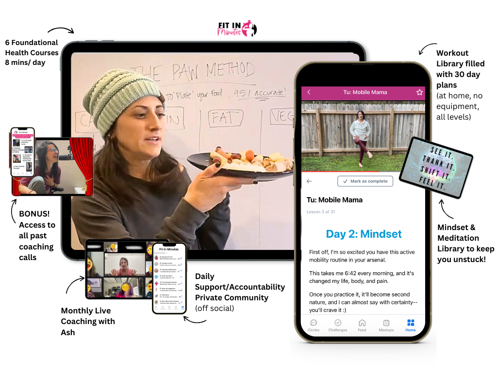 ✅ [bonus] Monthly Live Coaching With Ash: Get expert guidance, answers, and next steps directly from Ash and the Fit In Minutes community; so you don’t stay stuck or second-guess yourself (guided by Ash’s 15+ years of hands-on experience helping moms navigate real mind, body, and life obstacles, so she's seen and heard it all).